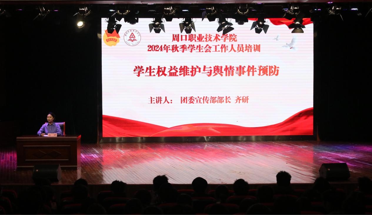 为深入学习并贯彻执行党的二十届三中全会精神,巩固并深化主题教育的成效,加强学生会全体成员的使命感与责任感,切实提升学生会组织成员的政治素养与理论水平,周口职业技术学院于2024年10月16日在开元校区砺德厅举办了2024-2025学年度秋季学期学生会工作培训会。参与此次会议的有主席团成员及校学生会的各位工作人员。