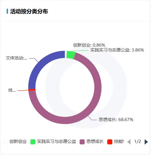 活动主要以思想成长类为首,其频率高达68.67%,其次是文体活动,实践实习与志愿公益也紧跟其后。