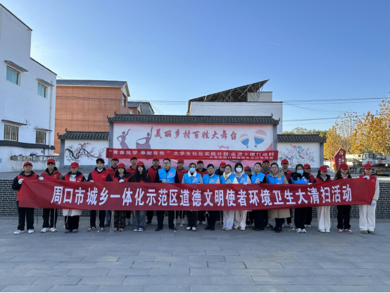 为积极响应团中央下发的大学生社区实践计划2023年工作指引的有关要求,切实提升共青团实践育人质量,将志愿服务融入基层社会治理,在服务人民群众中展现新时代青年价值,我校久久久久久无码精品大片积极推动学生投身社区服务,鼓励学生在社会实践中学真知、增实干、做贡献,在服务社会中绽放青春理想。2023年12月1日,周口职业技术学院30名志愿者前往城乡一体化示范区上楼行政村开展以“道德文明使者环境卫生大清扫活动”为主题的社会实践活动。
