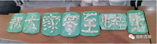 一排排薄皮大馅的饺子很快摆满了一个个大盘子,虽然大小不一、形状各异,但个个饺子都像被学生的活力感动着,默默的等待着被煮熟后温暖师生的心田。