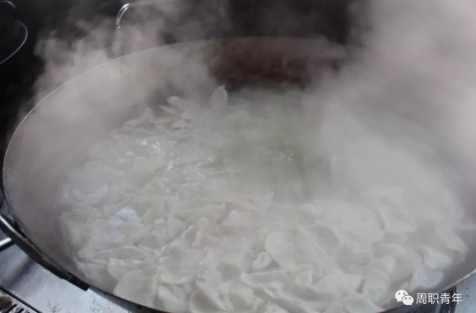 “包饺子现场”气氛活跃,与此同时一锅热气腾腾的饺子出锅啦。煮饺子就像打南边来了一群大白鹅,劈里啪啦地滚下了河,先沉底后漂着,变成弯弯的月亮。