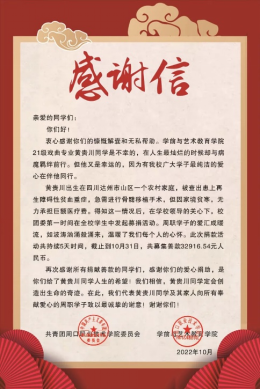 截至目前,各院部团总支的捐款合计32916.54元,善款将由学前与艺术教育学院转交给黄贵川同学的家人
