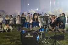 在秋日的晚上和一群闪闪发光的朋友们在校园里头顶夜空一起听校园“音乐汇”