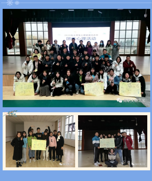 为进一步缓解团学干部心理压力,2020年12月9日下午,我校心理健康教育中心联合文化教育学院,在体育馆组织文化教育学院团学干部开展了一场团体心理辅导活动。