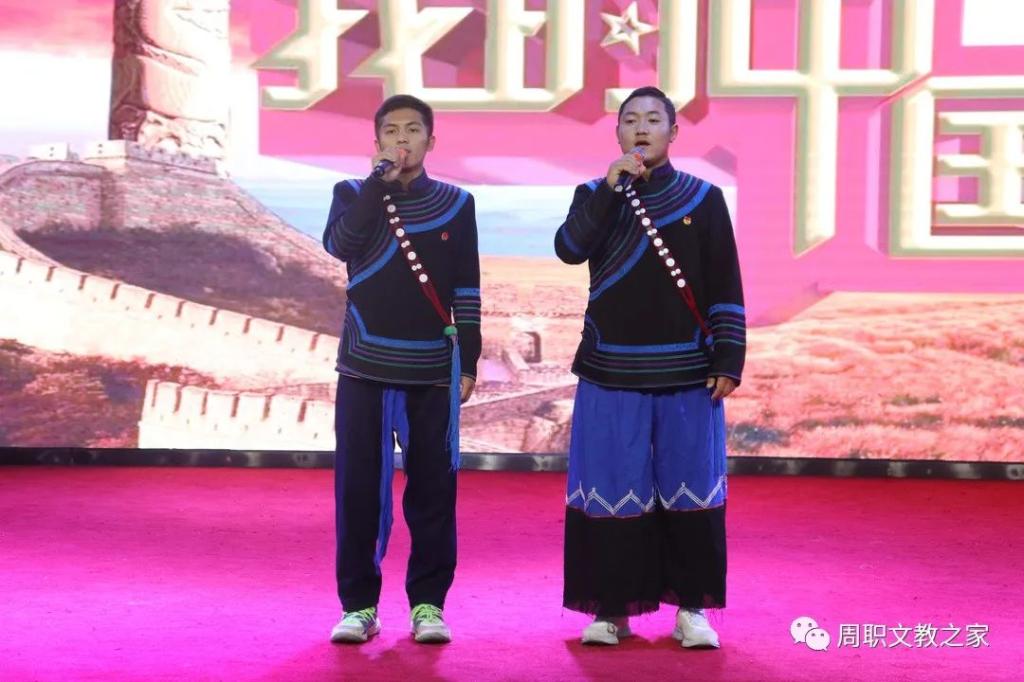 周口职业技术学院文化教育学院学生曲比伟日、金曲惹献唱彝族歌曲《祖国之子》。