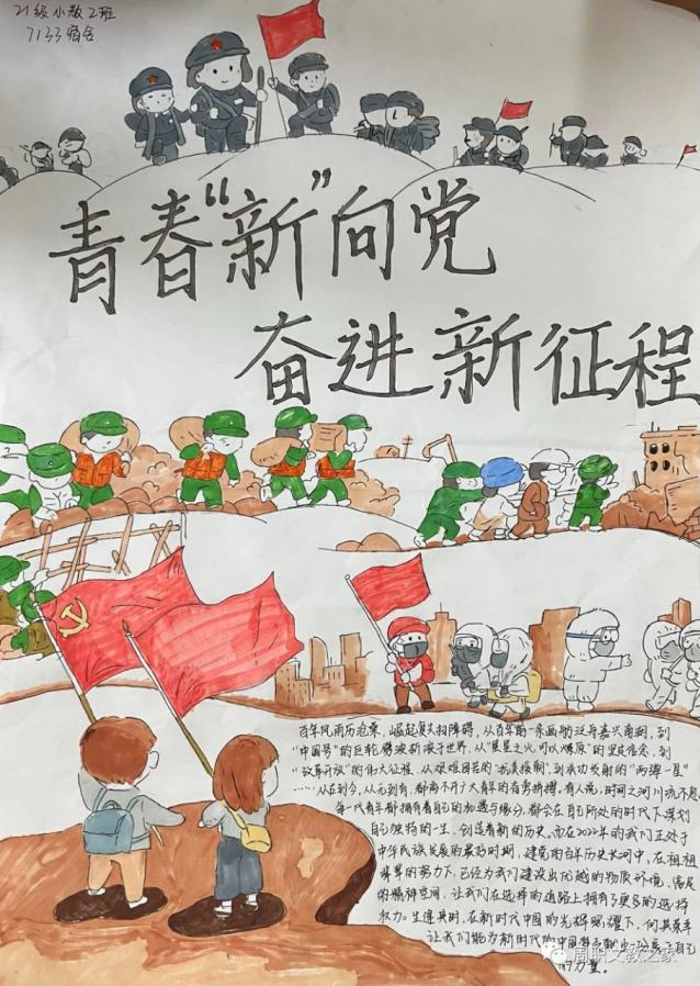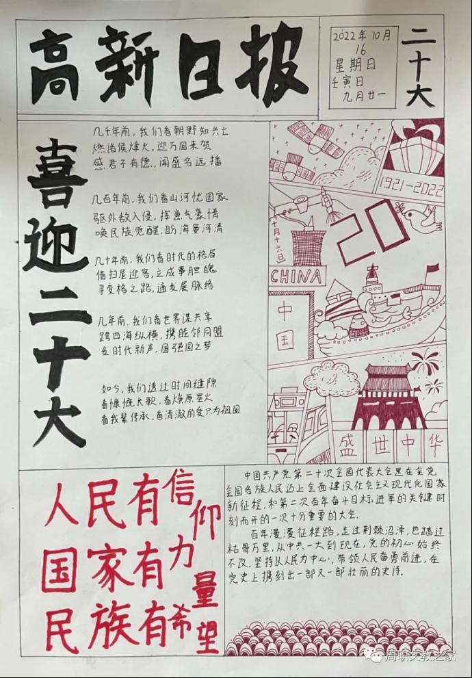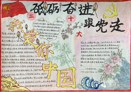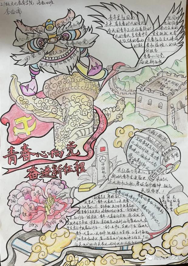 为激发青少年奋进新时代的昂扬斗志和永远跟党走的信念,文化教育学院组织开展以“ 青春心向党,奋进新征程”为主题的手抄报比赛。