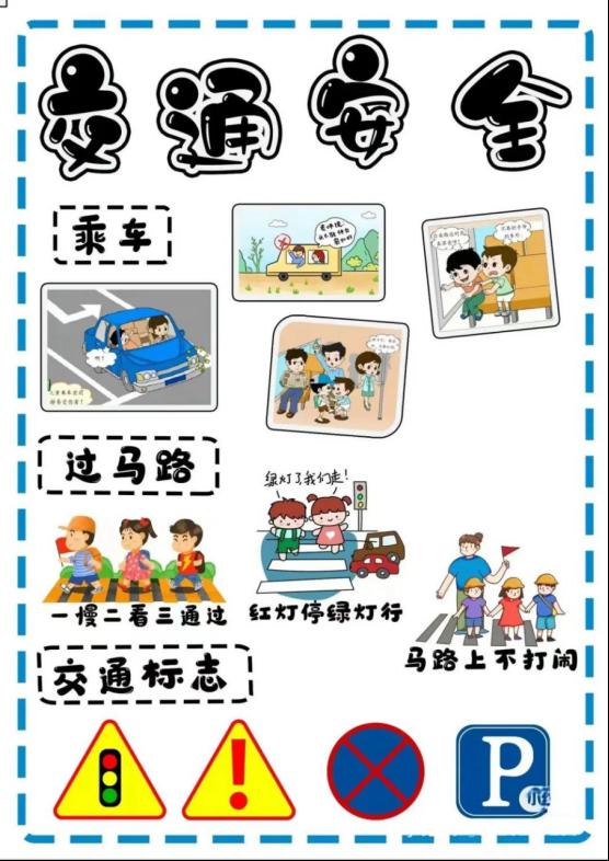 1.自觉遵守交通规则,不在马路上跑闹、玩耍。
