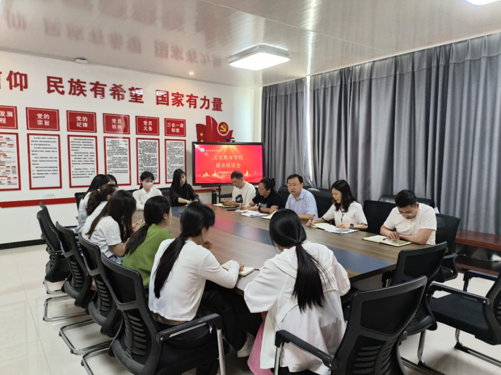 5月14日下午,文化教育学院在五区党员活动室召开2024届毕业生就业工作推进会。我院党总支书记展贤东、院长史丽珍、学管副院长于慧娟、教学副院长李炯、学管办主任普俊、综合办主任石永丽以及全体2022级辅导员参加会议。会议由展贤东主持。