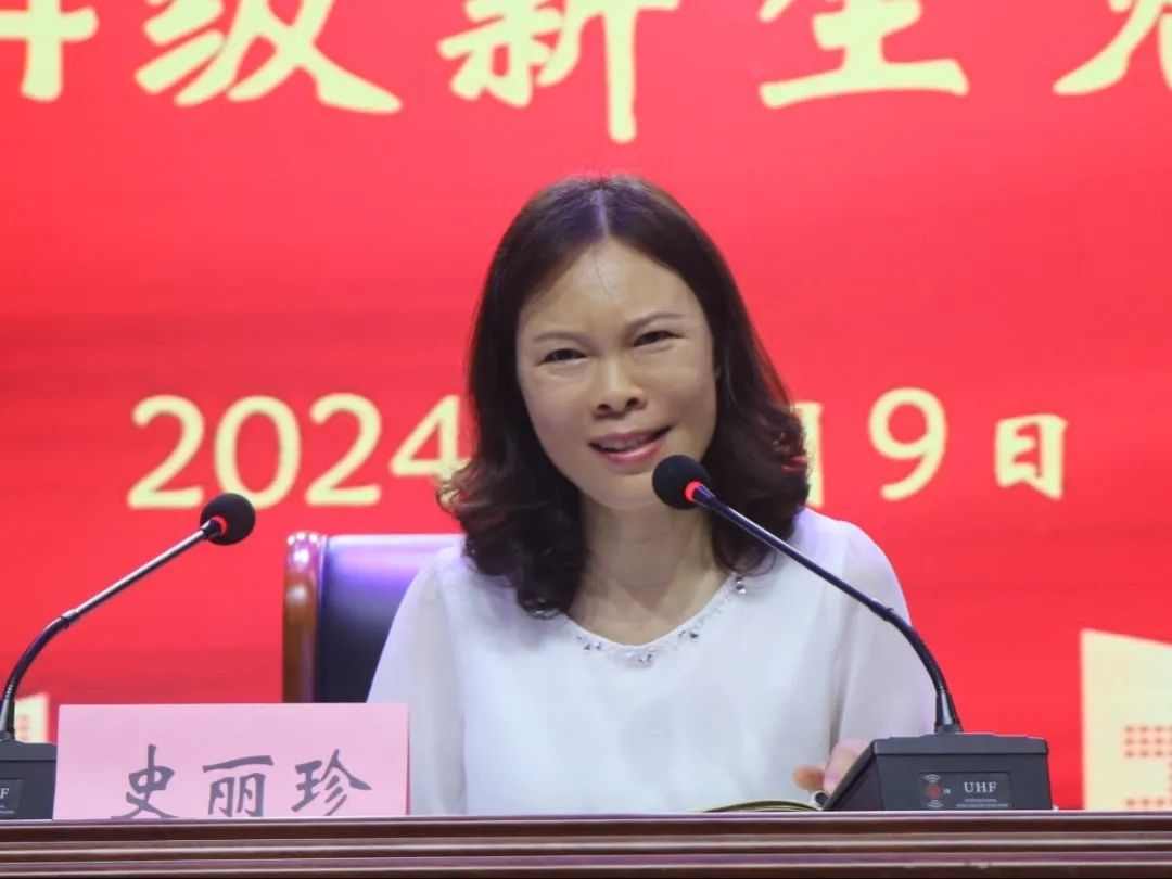 史丽珍院长向24级新生介绍了学校发展历史和文化旅游学院的师资力量、实训室建设和取得的各项成绩,希望新生们了解学习要求,树立学习目标,要求大家学好专业知识。最后希望新生同学们牢记嘱托,不负韶华,在青春的赛道上奋力奔跑,争取跑出当代青年的最好成绩!
