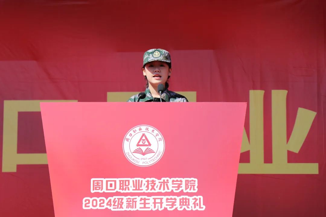 文化旅游学院24级酒店管理与数字化运营二班的王芃真同学代表24级新生发言。大学是青春的舞台,是梦想起航的地方。她鼓励同学们要秉承校训精神,志存高远,脚踏实地,在周口职业技术学院这片热土上,挥洒汗水,收获成长,书写属于自己的精彩篇章!