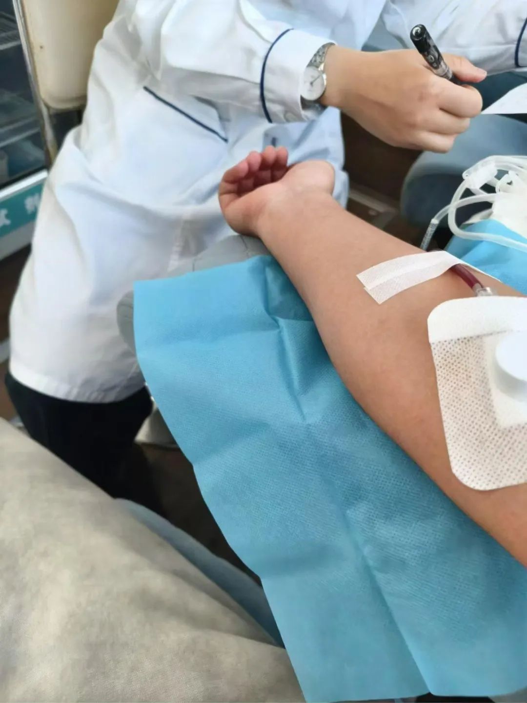 在献血活动结束后,志愿者引导献血者领取学校特别准备的献血纪念品和献血证,为此次献血活动画上了温馨的句号。