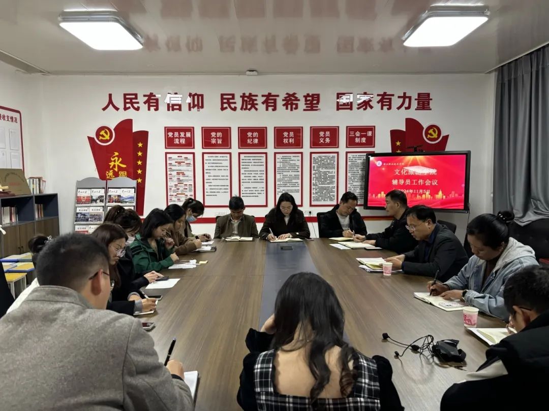 为推进学院各项工作有序开展,强化辅导员工作的责任与担当,推动学生管理工作做实做细,11月5日下午,文化旅游学院在五区党员活动室召开学生工作会议。学院党总支书记展贤东,副院长于慧娟、李炯,学管办主任普俊、综合办主任石永丽以及23、24级全体辅导员参加会议。会议由展贤东主持。