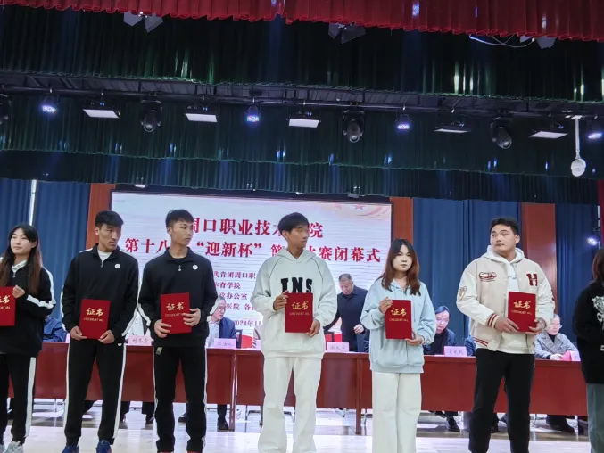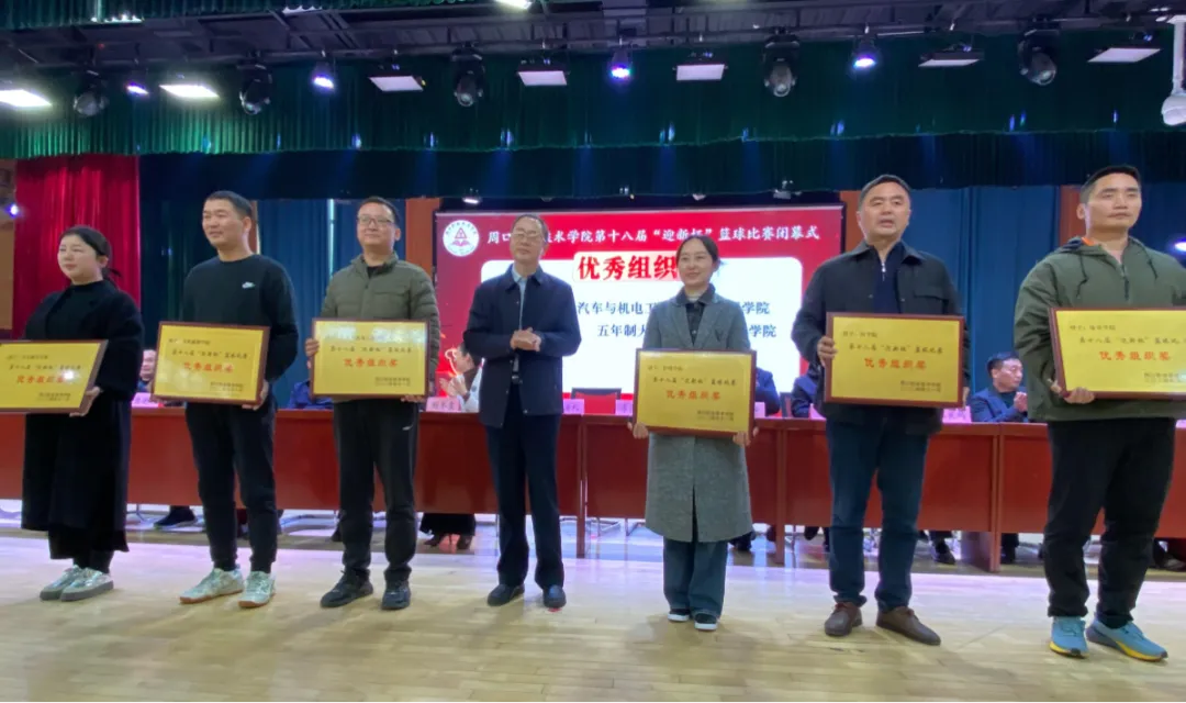 周口职业技术学院第十八届“迎新杯”篮球赛闭幕颁奖仪式于2024年11月21日下午3:00在体育馆举行。文化旅游学院党总支书记展贤东、学管办主任普俊以及获奖运动员参加此次活动。