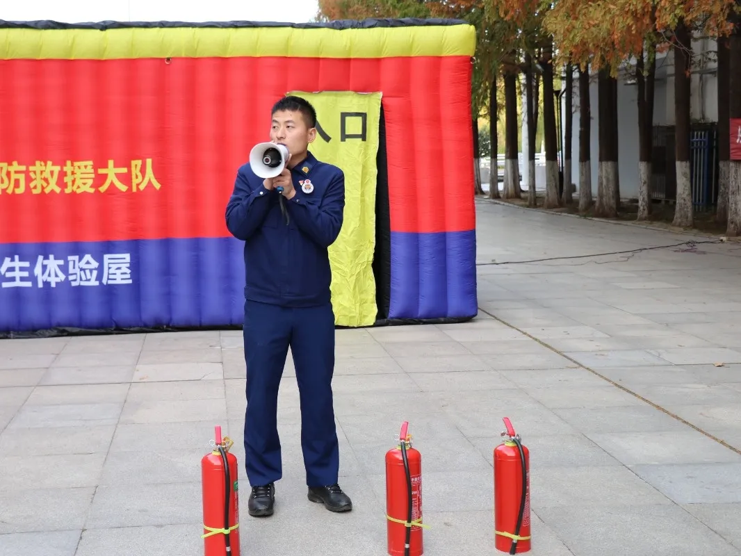 为加强我院师生的消防安全意识,掌握消防安全知识,提高应对突发事件的应急应变和协调配合能力,11月26日下午,周口市经开区消防救援大队在砺德厅开展“全民消防 ,生命至上” 消防知识及逃生演练宣讲。文化旅游学院教师和学生参与本次演练宣讲。