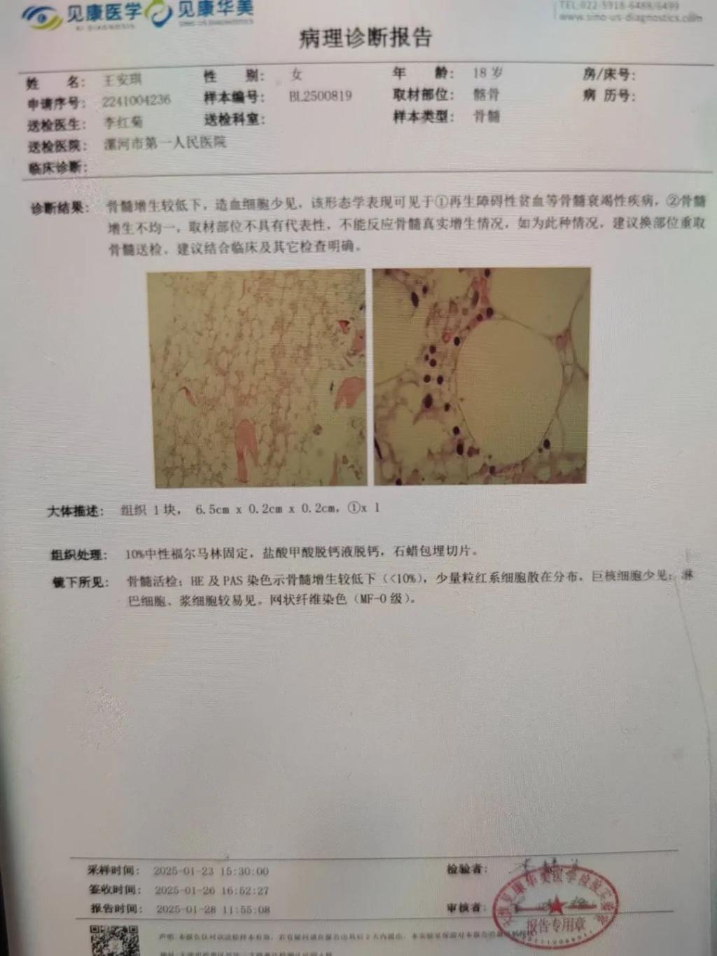 在我们身边,有这样一位同学,她正面临着巨大的困境,急需要我们的帮助。她是我们24级文化旅游学院酒店管理2班的王安琪同学。在年前,她有一天早上摔倒导致鼻子大出血,本是给鼻子治疗,但抽血结果如晴天霹雳——重型再障碍贫血,目前在武汉华中科技大学同济医学院附属同济医院进行治疗。