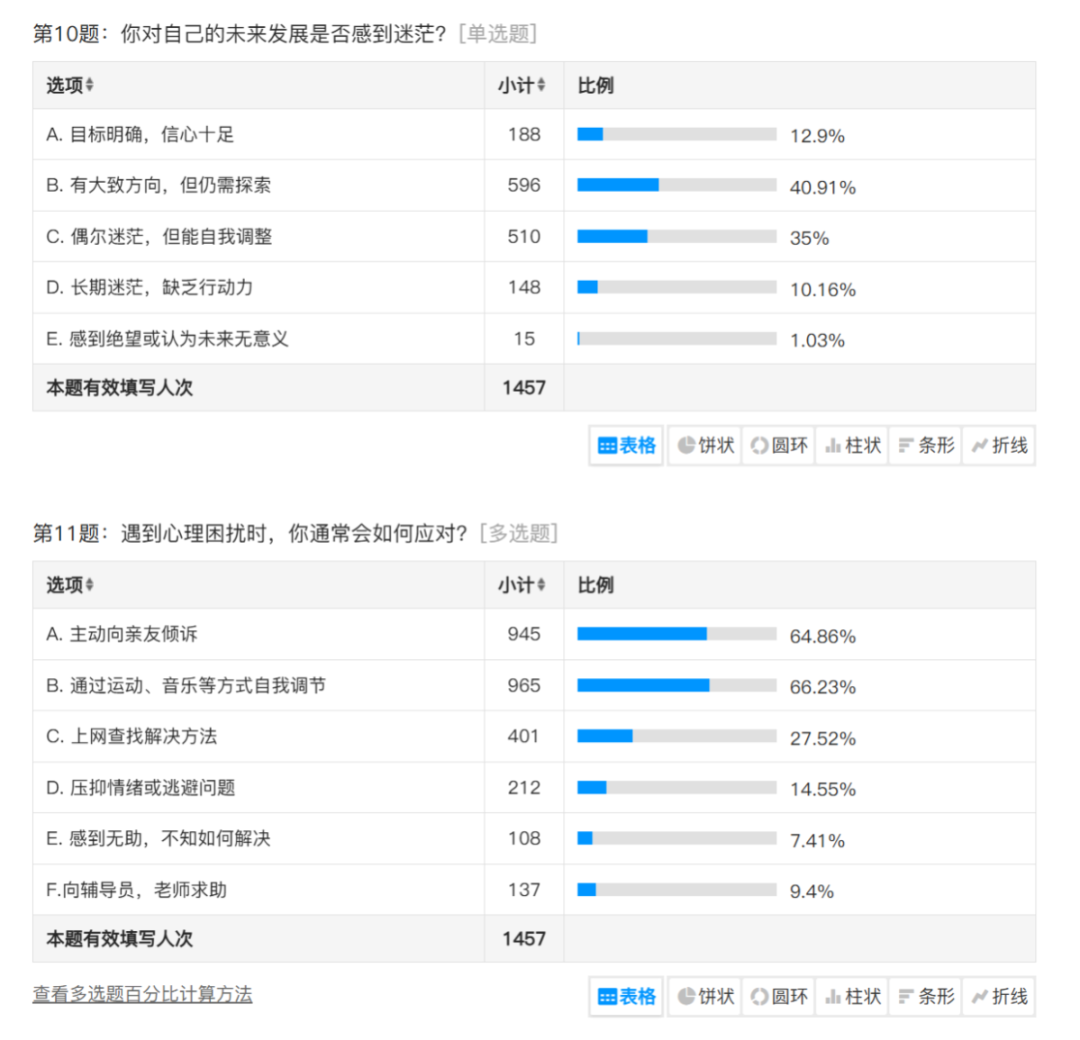 通过此次同学们悉心填写的心理调查问卷,我们成功收集并梳理出了多方面的数据,包括同学们会通过何种方式来缓解压力、认为学校是否有必要开展更多的心理健康教育、是否了解常见的心理疾病、是否存在睡眠障碍以及出现心理问题后该如何应对等相关数据。