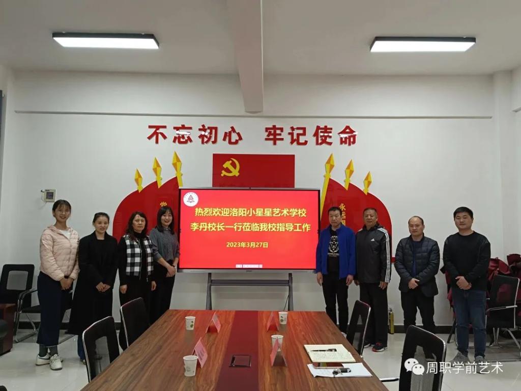洛阳小星星艺术学校李丹校长一行首先与各学院领导开展交流。学前与艺术教育学院党总支书记王春生、院长高岐奎、文化教育学院党总支书记唐文杰,体育学院院长徐长宇出席交流现场,并对李丹校长一行人的到来表示热烈的欢迎。