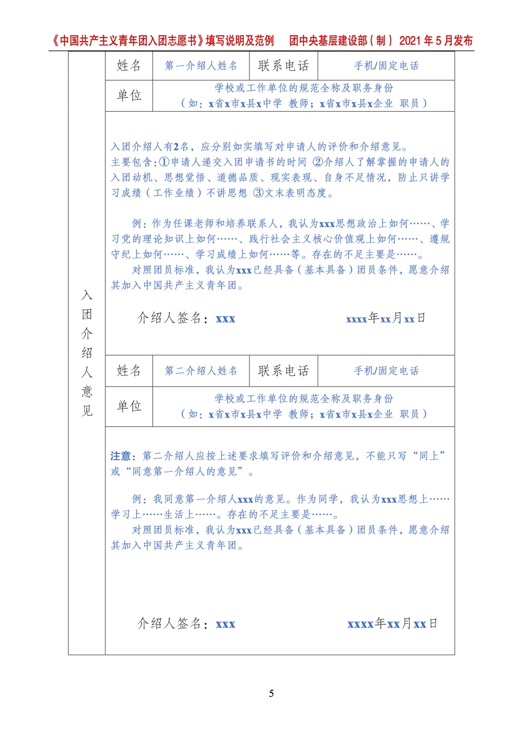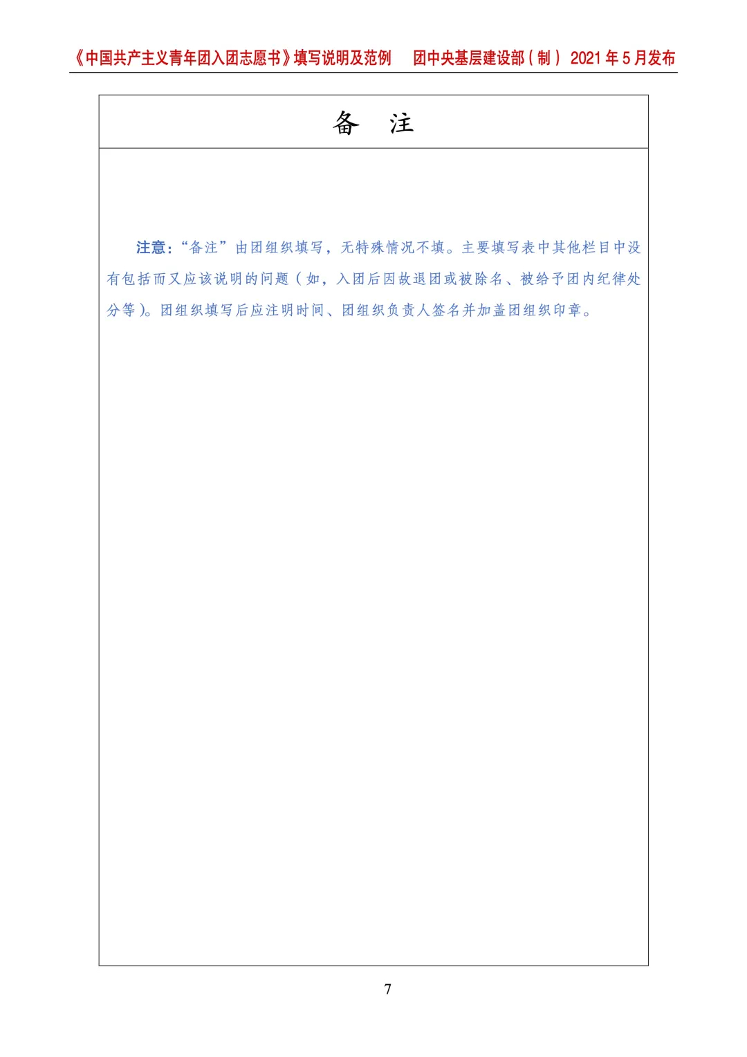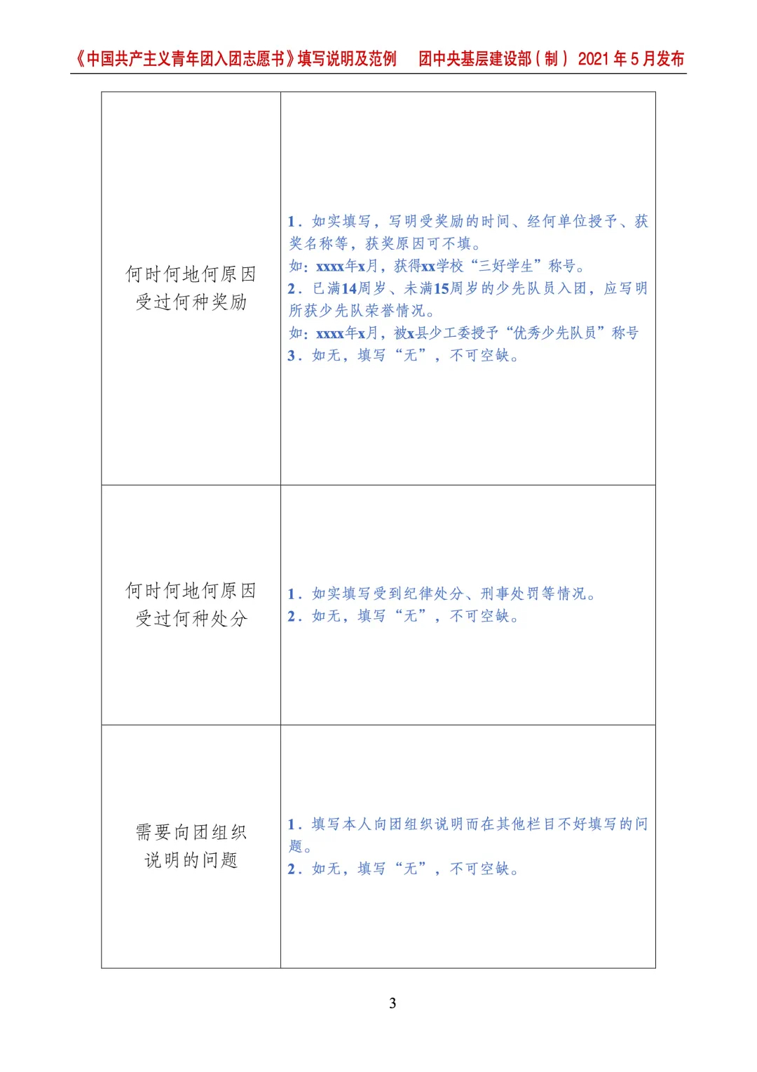 工作中发现,有的地方在填写、审核入团志愿书过程中存在指导不具体、填写不规范、审核不细致、审批不严谨等问题,影响了发展团员的质量和工作的严肃性、规范性。为加强具体工作指导,团中央基层建设部制定了入团志愿书填写说明及范例,供广大基层团组织、团干部和入团积极分子学习掌握。