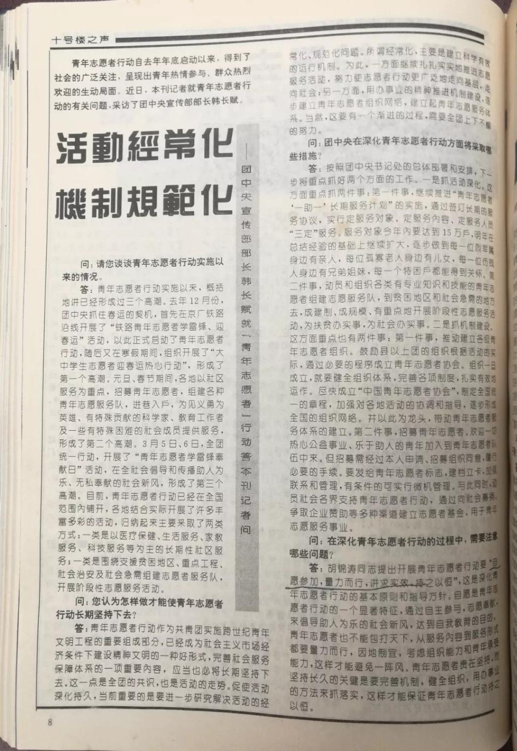 1994年第7期《中国共青团》杂志就“青年志愿者”行动对时任团中央宣传部部长韩长赋同志做的专访