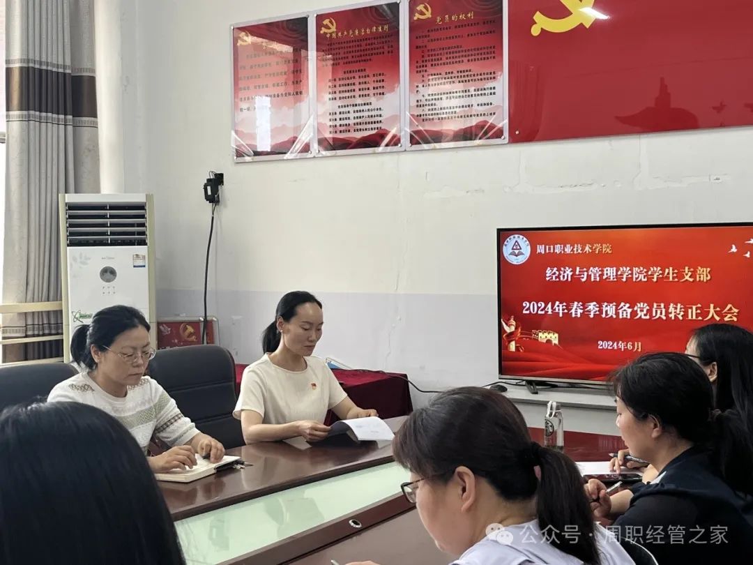 为进一步规范党员发展流程,提高党员发展质量。6月5日下午,经济管理学院学生支部在第四会议室召开2024年春季预备党员转正大会,大会讨论了刘雅雯等13位预备党员转正的相关事宜。学生党支部书记杨璐璐以及各入党介绍人参加会议。会议由杨璐璐老师主持。