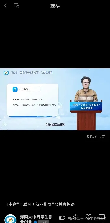 此次河南省“互联网+就业指导”公益直播课,旨在帮助同学们心理辅导,让同学们更加清晰的了解当前的就业形势和政策,正确把握目前就业市场的需求取向,提升了大学生就业信心。期待我院学生能够抱有理性平和、积极向上的健康心态,秉承乘风破浪、勇往直前的坚定信念,跨越山海奔赴下一场诗和远方。