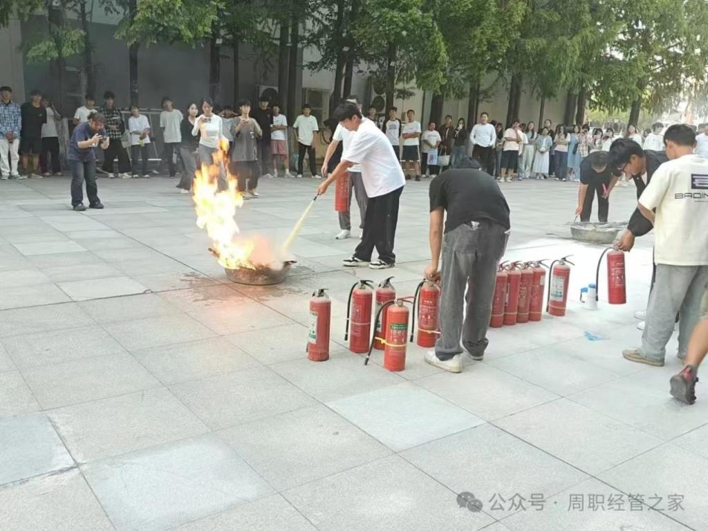 演练过程中,保卫处管理人员详细讲解了相关消防知识,让同学们对火灾的危害和防范有了更深刻的认识。保卫处现场演示了灭火器的使用方法,随后,又演示了消防栓的使用方法,快速接上水管并放水。整个过程高效且专业,让同学们大开眼界。随后,同学们踊跃参与灭火器的使用方法,同时增强了实际操作能力。