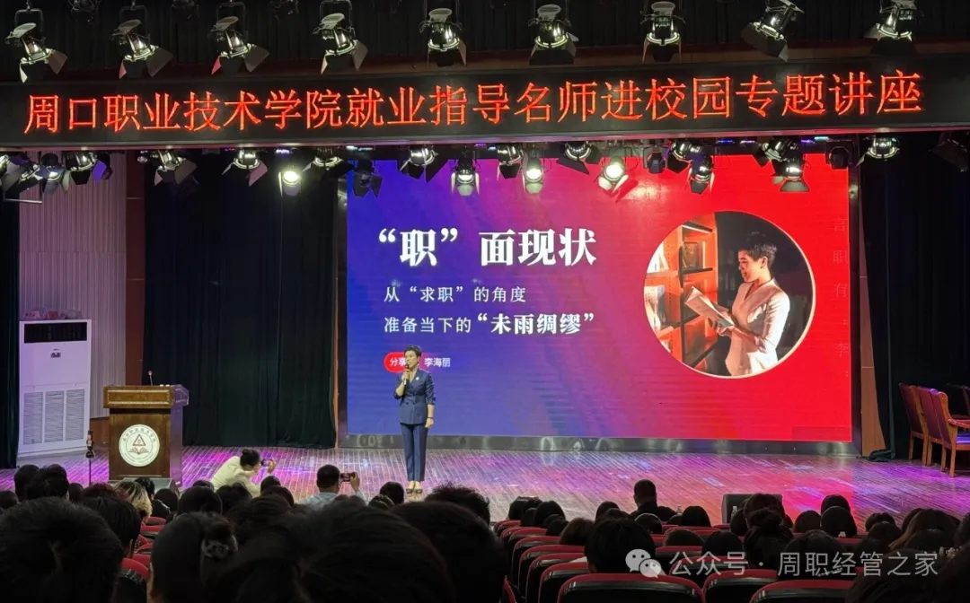 为提升学生就业应试能力,加强就业危机意识,促进学生更好的面对就业问题,周口职业技术学院于10月15日在励德厅举行大学生就业指导名师进校园专题讲座活动,经济与管理学院学生积极参加。