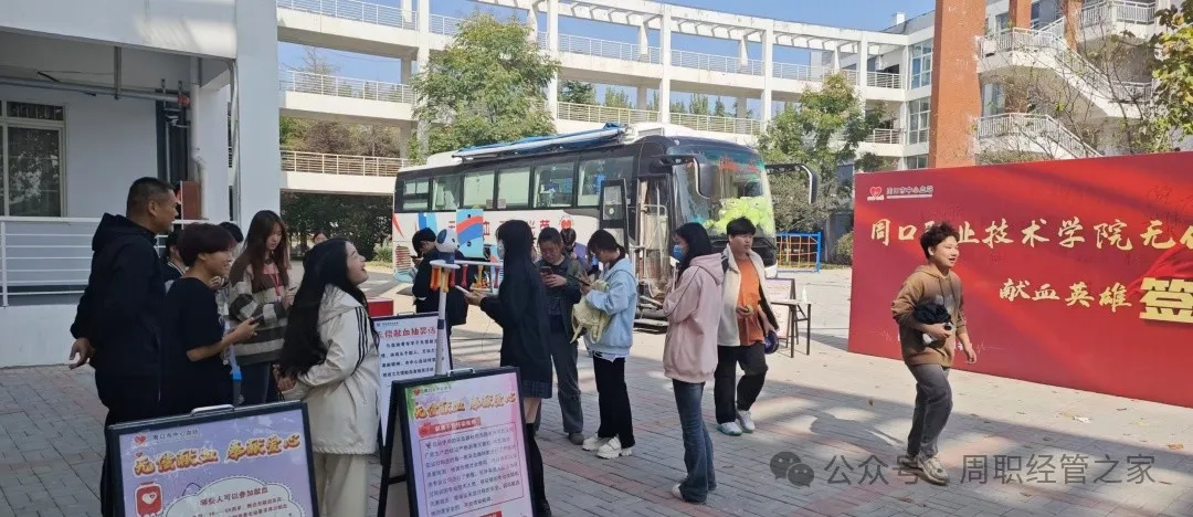 为积极响应无偿献血的号召,进一步弘扬奉献精神,培育文明新风尚,共筑和谐友爱的社会环境,周口职业技术学院于10月29日在校园内举行爱心献血活动。经济与管理学院众多同学踊跃参加。