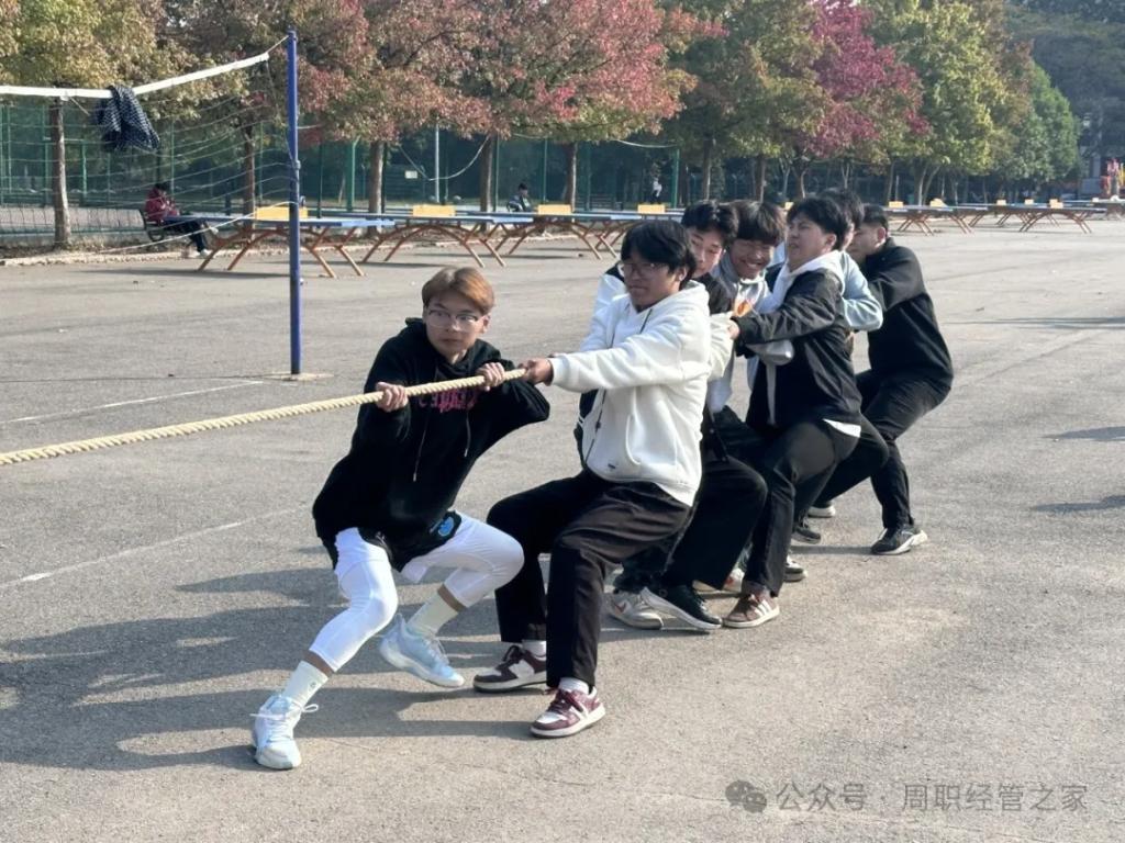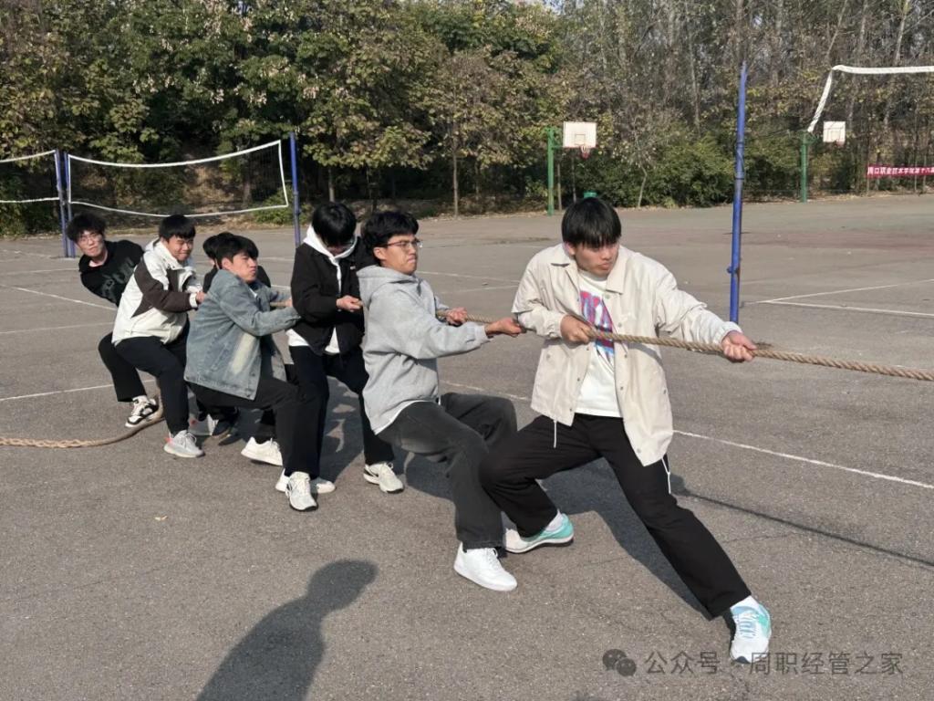 为了增强学生团结协作能力,培养集体荣誉感,提升对集体的归属感,锻炼个人身体素质和意志力,促进群体间的交流和沟通,经济与管理学院于11月5日下午在田径场开展以“关爱心灵,绽放青春色彩”为主题的心理健康系列活动之拔河比赛,此次活动由经济与管理学院文体部主办,23级,24级同学积极参加。