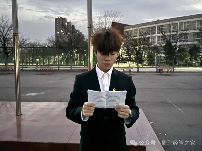 国旗护卫队迈着整齐有力的步伐护送国旗至升旗台下,伴随着庄严的国歌,国旗缓缓升起,全体师生行注目礼并高唱国歌。正值年末与新年的交汇点,学生代表苗云龙进行演讲,对本学期的各方面进行了总结,呼吁当代大学生将个人理想融入国家发展,于学业、品德、实践等方面积极努力,以青春奉献祖国。党总支书记陈鹏着重指出,专业知识与自身实践相互融合具有极为关键的意义。并在讲话中对新一年度的工作目标展开了积极展望,表达了对各项工作顺利推进、取得卓越成效的殷切期许。同时,也向同学们送上了充满温情与期待的美好祝愿,激励同学们在未来奋勇拼搏、砥砺前行。