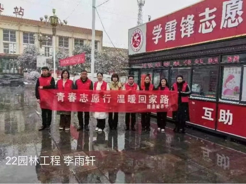 在2023年春节期间,周口职业技术学院农牧工程学院22级园林工程一班的李雨轩同学及22级畜牧二班的尹馨颐同学积极参加以“青春志愿行,温暖回家路”的志愿服务工作,为春节返乡人员提供帮助,充分体现了当代大学生的活力和担当,同时也给自己的寒假生活添上了难忘的记忆。