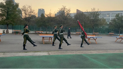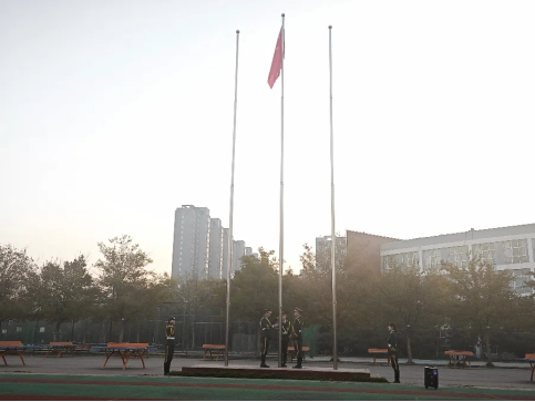 随着高豪杰宣布升旗仪式正式开始,在全体师生的注目礼下,英姿飒爽的国旗护卫队队员迈着铿锵的步伐护送着鲜艳的五星红旗进场来到国旗台前。“升国旗,奏国歌,向国旗行注目礼!”伴随着嘹亮的歌声,五星红旗冉冉升起。全体师生肃穆敬礼,自豪与骄傲之情油然而生。