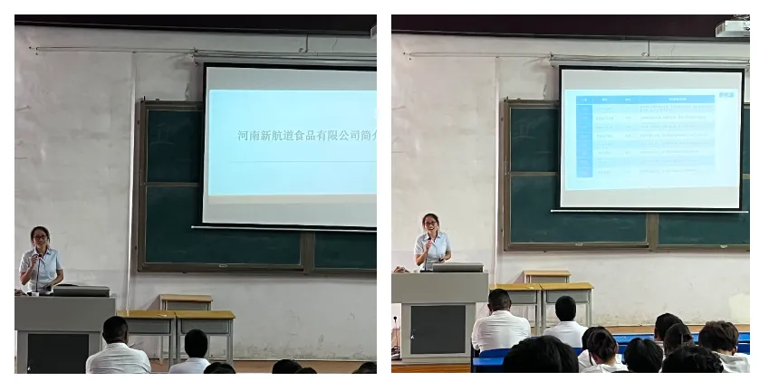 宋建华院长首先对新航道公司进行了简单介绍,鼓励同学们多了解公司背景与理念。随后,新航道公司魏春娅副总裁、郭林林总监详细介绍了员工福利、岗位需求、晋升机会、应聘要求等方面,并介绍了公司对非洲猪瘟的认识及安全防控措施,极大程度上调动了同学们的兴趣。这种直面企业的交流方式,使同学们更深入了解企业的工作内容、发展理念和用人需求,让众多学生更加明晰了自己的职业定位和发展方向。