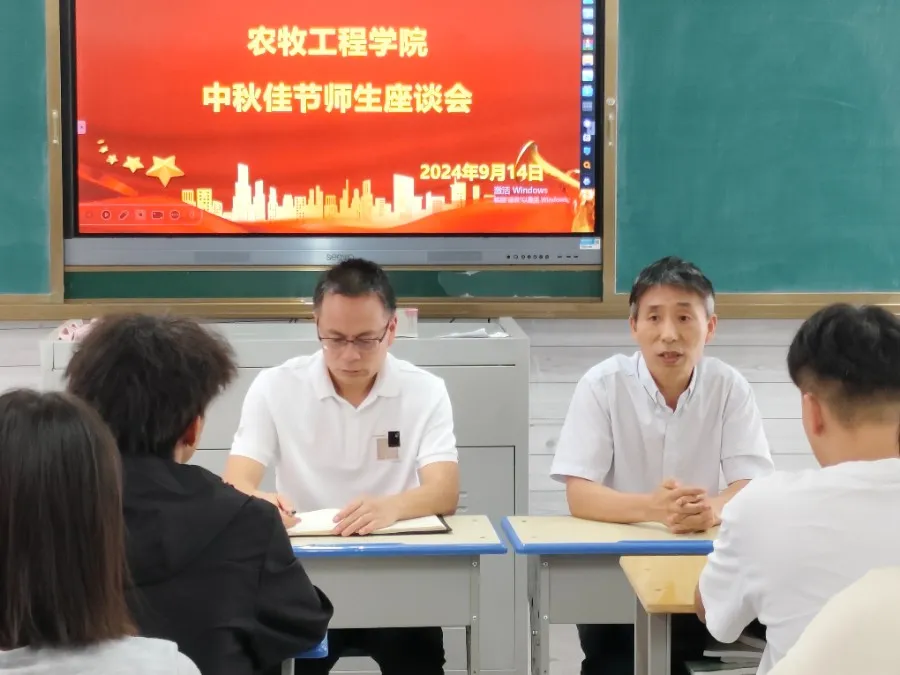 金秋送爽,丹桂飘香。为了让我院学生感受到节日的温暖和学院的关怀,9月14日,农牧工程学院特别组织了一场以“ 喜迎中秋,共话团圆”为主题的中秋佳节师生座谈会。党总支书记王安、副院长王伟出席会议。