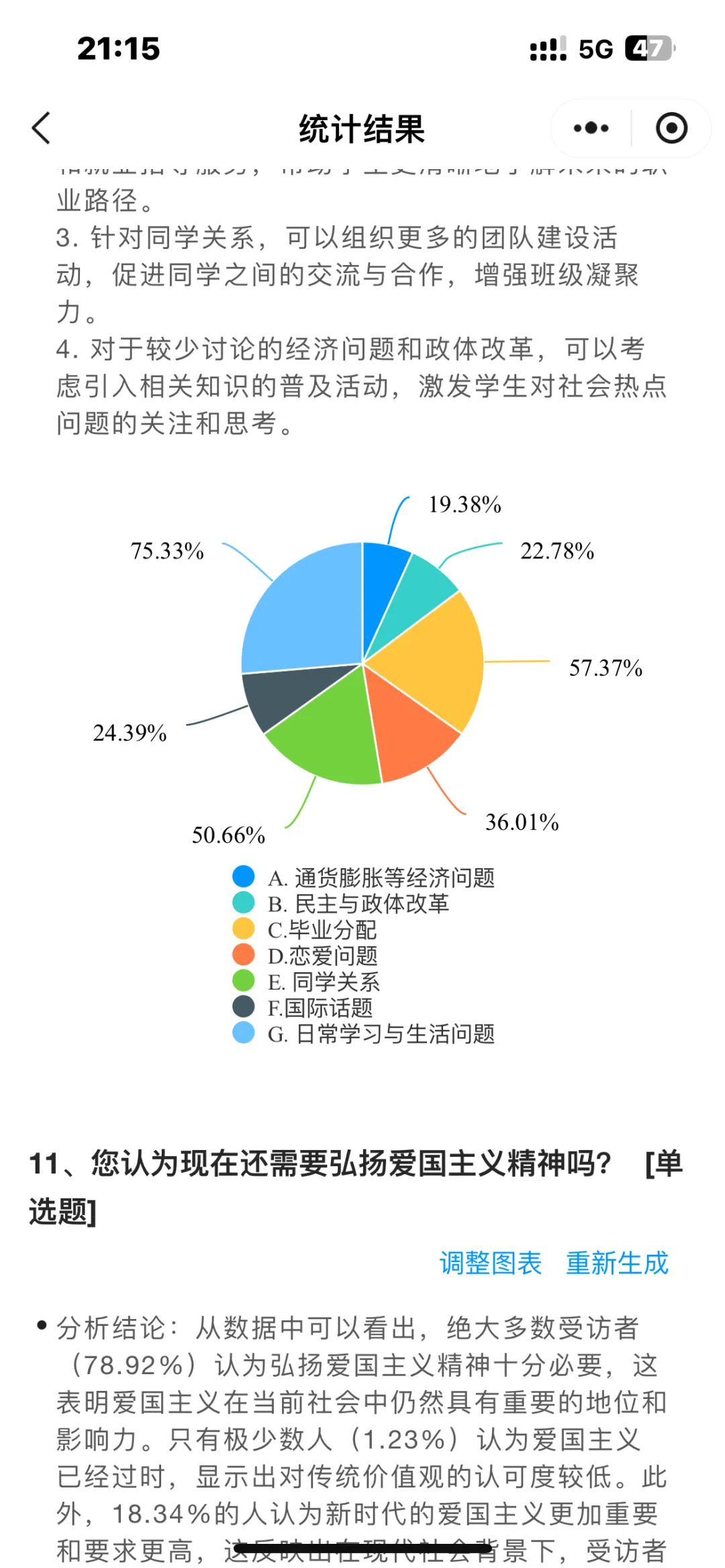 通过本次问卷调查,我们对大学生的思想政治状况有了更加全面和深入的了解。同时,我们也发现了一些存在的问题和不足。在未来的工作中,农牧工程学院将继续加强大学生的思想政治工作,不断创新方法和手段,为培养具有高度社会责任感、良好思想道德素质和创新能力的高素质人才做出更大的贡献。