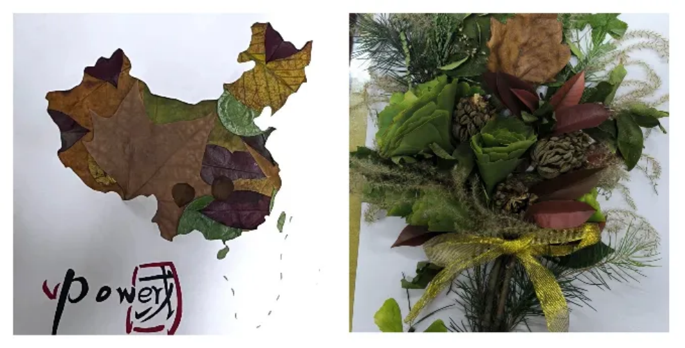 活动中,经过同学们的设计、拼接、黏贴,一幅幅设计精美、充满创意、内涵丰富的落叶画作品呈现眼前,学生亲手触摸到了秋天的韵味、领悟到了秋意之美,将这份秋意定格在纸上。