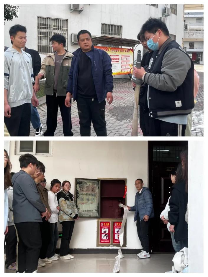 本次活动邀请消防专业人员进行现场讲解,分为“先培训示范、再实操演练”两个阶段进行。讲解人员结合日常工作、生活实际,详细讲解火灾预防、应急处理、火场自救逃生等注意事项,并“手把手”演示干粉灭火器“一拿、二拔、三喷”使用技巧,带领同学们切身体验了一场实战灭火。随后,对办公楼消火栓的使用,按照开箱门、按手报、拿水枪、拉水带、开阀门的步骤进行了现场讲解体验。让全体师生近距离感受火灾扑救过程,在实际参与中掌握灭火要领,提升自防自救能力。