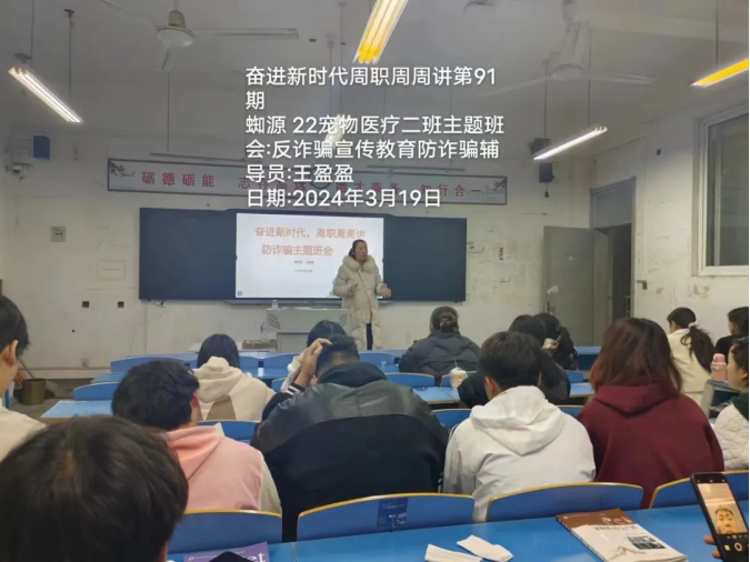 为进一步做好校园防范诈骗工作,加强对学生的防诈骗安全教育,提高学生防诈骗的意识和能力,构建和谐平安校园。3月19日农牧工程学院开展防诈骗主题教育班会,向同学们普及预防诈骗的相关知识。