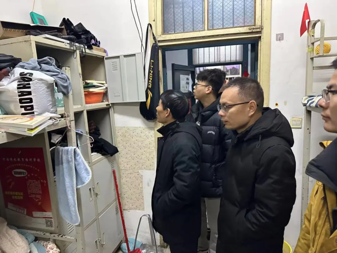 本次检查的目的在于排查寝室内的安全隐患,提高学生们的安全责任意识,注意宿舍用电、防火安全,切实保障人身及财物安全,避免安全事故的发生。院领导认真地检查了寝室宿舍的用电情况,并提醒学生注意用电安全,杜绝大功率电器的使用以及私自乱接电线等容易造成火灾的行为。