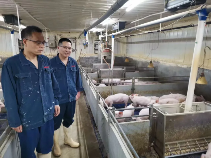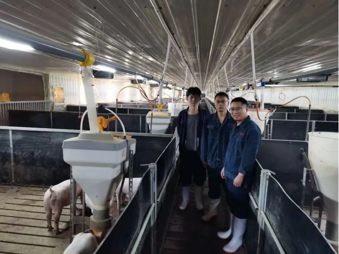 郭林林带领学院领导参观了位于虞城县的张集猪场,并就公司的智能化、规范化管理进行了介绍,同时一起看望了在场工作的学生。