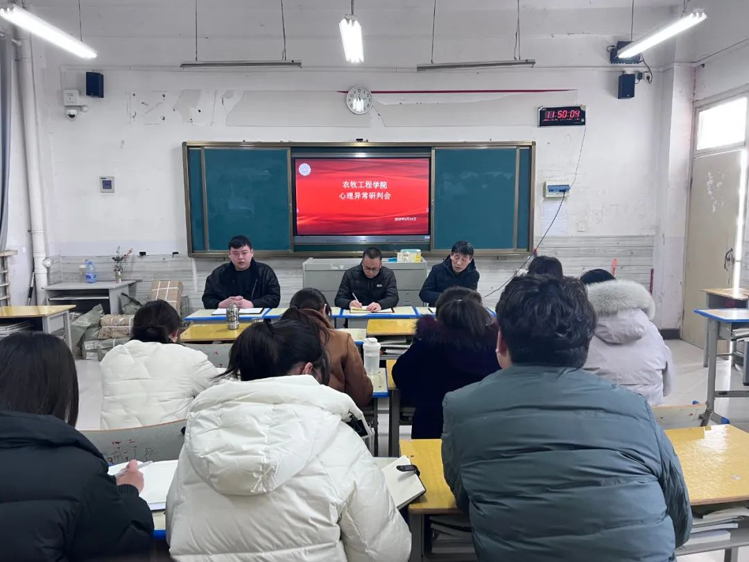 为全面掌握学生心理健康状况,努力提升心理育人工作实效,加强对学生心理状况的把控和研判,2月24日,农牧工程学院召开心理异常研判会,会议由党总支书记王安、副院长王伟、学管办主任巩小凯以及全体辅导员出席。
