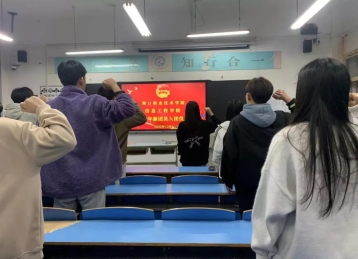 为增强团员意识,提升团员队伍先进性。争做共青团员,发扬红色传统。为扎实推进共青团改革,落实从严治团要求,加强我系共青团队伍建设,切实增强团员的光荣感和使命感,信息工程学院于11月20日在6435教室为2022年新发展团员举行入团仪式。信息工程学院团总支书记王晓菲以及新老团员参会。入团仪式以慷慨激昂的国歌展开序幕,新团员宣誓,老团员重温入团誓词。