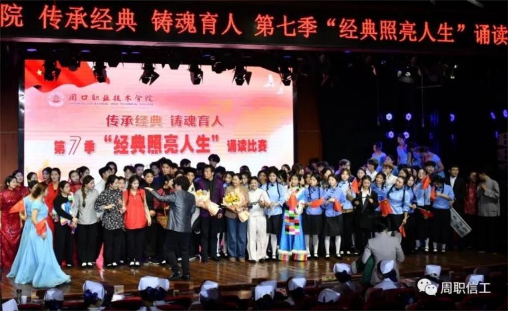 为深入学习贯彻习近平新时代中国特色社会主义思想,弘扬社会主义核心价值观,加强大学生思想道德建设,2023年12月27日,周口职业技术学院信息工程学院在立德厅举办第七季“经典照亮人生”诵读比赛中喜获三等奖,为学院赢得了荣誉。