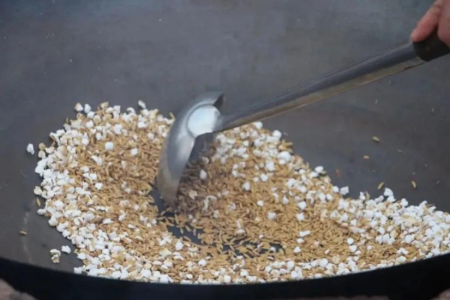 所谓“占稻色”,就是通过爆炒糯谷米花,来占卜是年稻获的丰歉。雨水当天,华南地区的农户人家往往以爆炒糯谷占卜收成,爆出的糯米花越多,意味着收成越好。