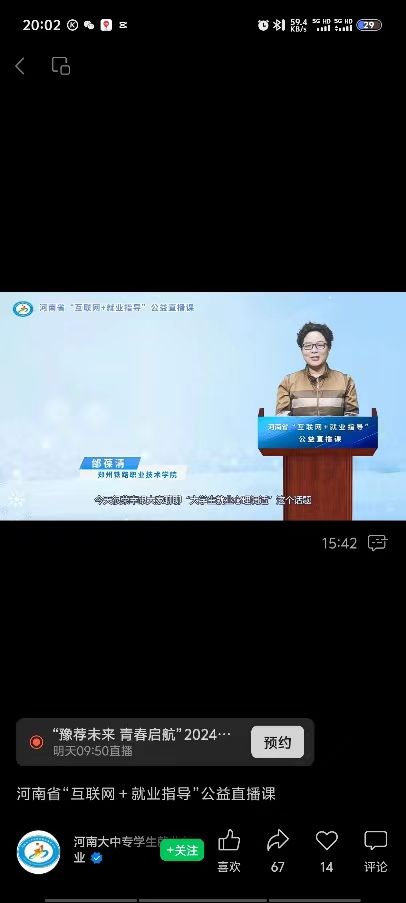 周口职业技术学院信息工程学院组织学生观看河南省“互联网+就业指导”公益直播课