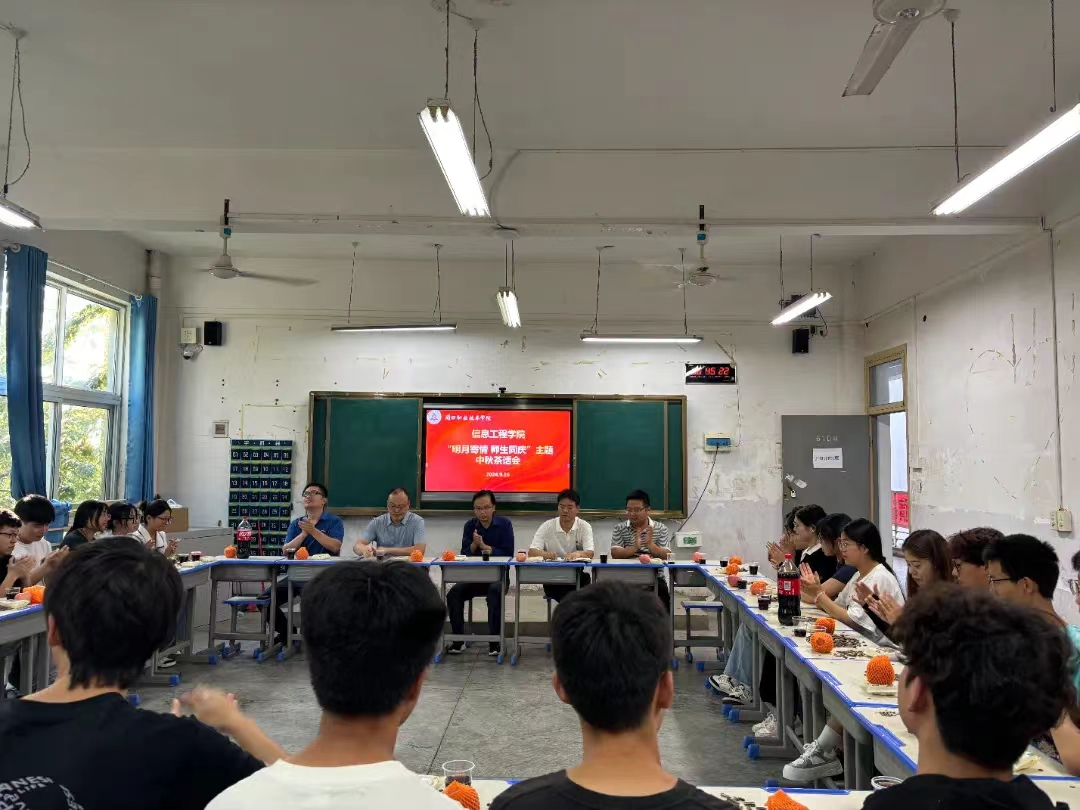 在茶话会上,老师们与同学们进行了亲切交谈,向同学们转达了学院对他们的节日祝贺与问候。黄院长在讲话中寄语道:“愿每一位学子都能像花灯一样,照亮自己的前行之路,同时也将这份光明与温暖传递给周围的人。”他还提醒同学们在假期期间注意出行安全、人身安全和财产安全,并祝愿同学们及其家人度过一个幸福美满的中秋假期。随后,在场的同学进行了自我介绍,并热情地分享了各自家乡独特的风俗习惯以及来到信息工程学院后的感受与体验,表达了对未来大学生活的憧憬以及用专业知识建功立业的理想。活动中,大家一边品尝零食,一边玩游戏,纷纷展示各自的才艺,为茶话会增添了不少乐趣与活力。