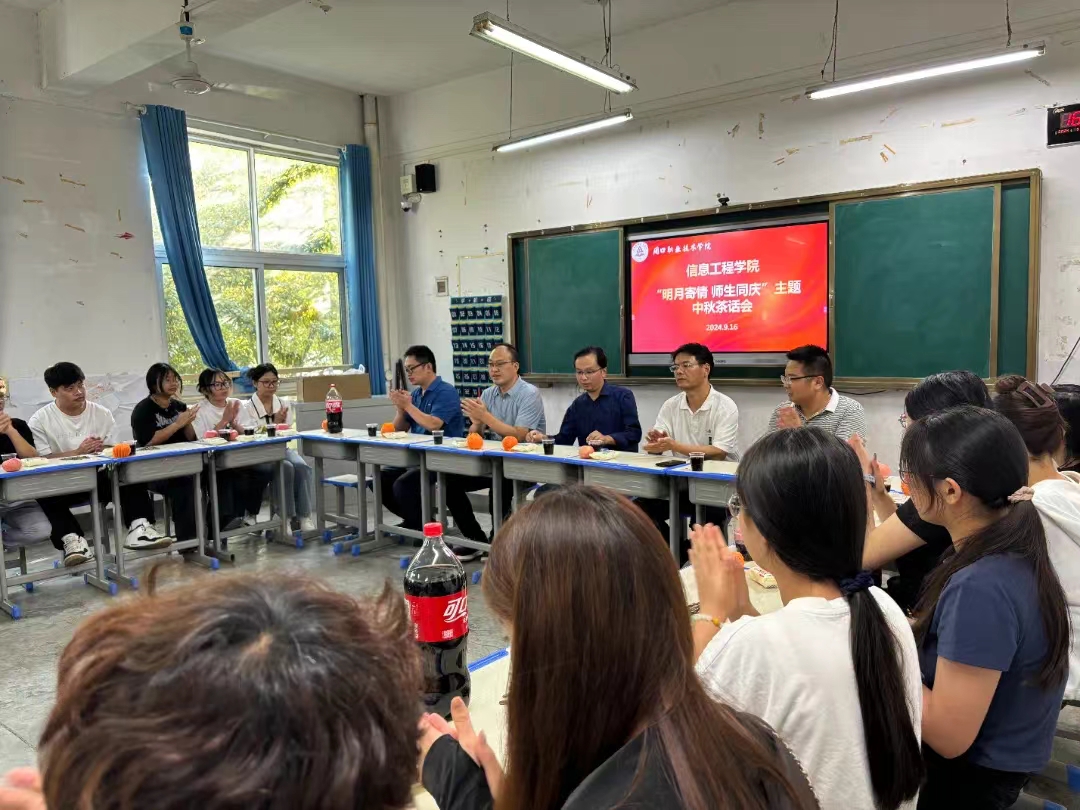 为庆祝中秋节,增进师生之间的感情,弘扬中华传统文化,信息工程学院于9月16日下午在6104教室举办了中秋茶话会。党总支书记宋良鹤、院长黄宇达、副院长楚书来、学管办主任张矿伟以及全体23级辅导员出席了此次茶话会,23级学生代表也参加了此次活动,茶话会由张矿伟主持。