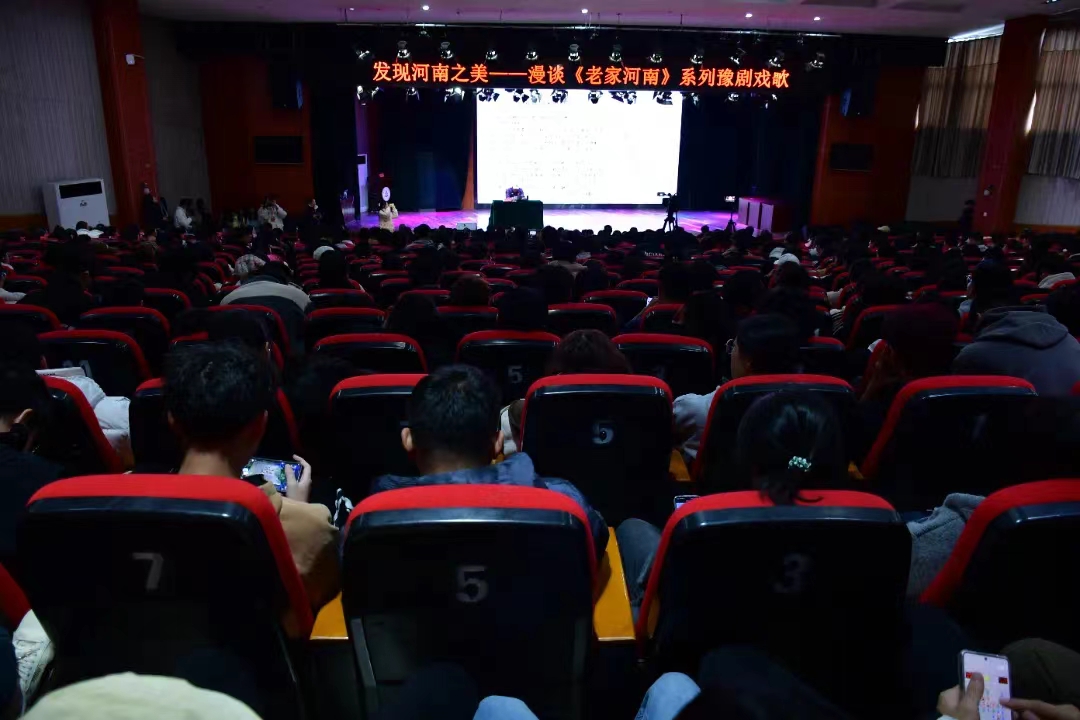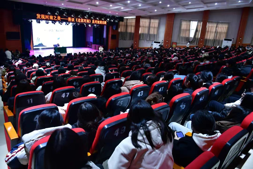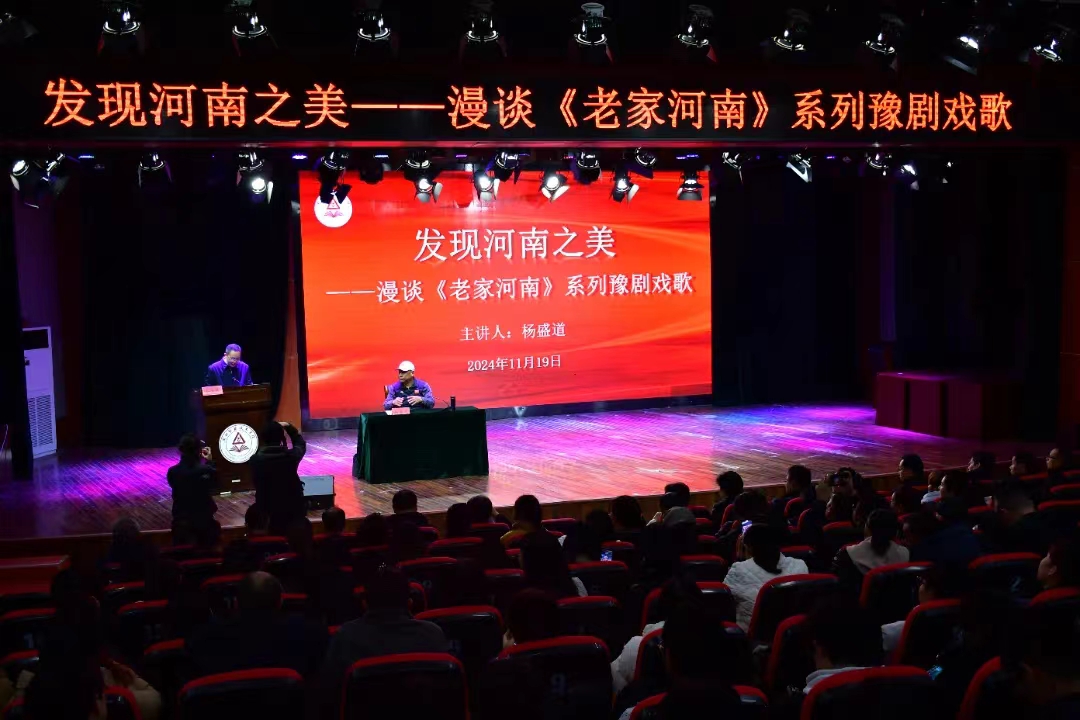 为了弘扬祖国优秀的传统文化,推进河南豫剧艺术的传承与发扬,加强同学们对豫剧的了解,更好地提升个人素养,坚定文化自信,凝聚民族共识,周口职业技术学院于11月19日下午在砺德厅举办了一场题为“发现河南之美”——漫谈《老家河南》系列豫剧戏歌的讲座。讲座邀请了河南大学客座教授、河南省文联专家指导委员会主任、原河南省委组织部副部长、人社厅厅长杨盛道教授主讲。信息工程学院党总支书记宋良鹤、部分教师和学生代表参加了本次讲座。