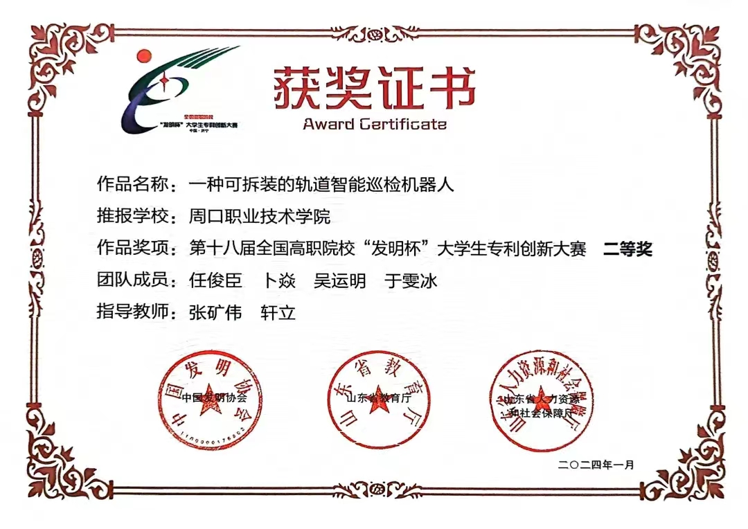 任俊臣,男,汉族,出生于2003年12月18日,预备党员,2022年9月入学,就读周口职业技术学院,信息工程学院计算机网络技术02班。曾获荣誉:第三届河南省大学生“创新之星”、2023国家励志奖学金、第七届普通高等学校“出彩中原”大学生社会实践活动项目获省级立项、河南第九届互联网+大学生创新创业大赛省赛一等奖、第十八届“振兴杯”全国青年职业技能大赛创新创效竞赛省赛金等奖、第十八届“振兴杯”全国青年职业技能大赛创新创效竞赛国赛金奖、第十八届“挑战杯”全国大学生课外学术科技作品竞赛“黑科技”展示活动恒星级作品(等同于全国一等奖)、第十八届全国高职院校“发明杯”大学生专利创新大赛国赛二等奖、第十届全国青年科普创新实验暨作品大赛三等奖等。