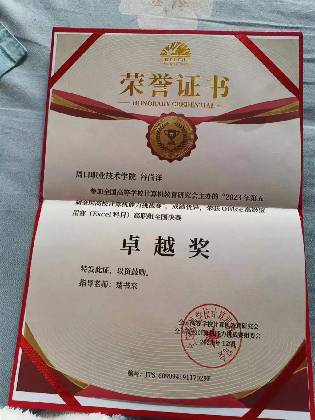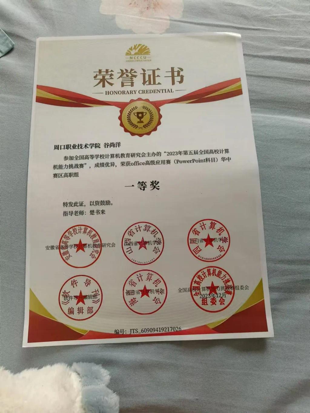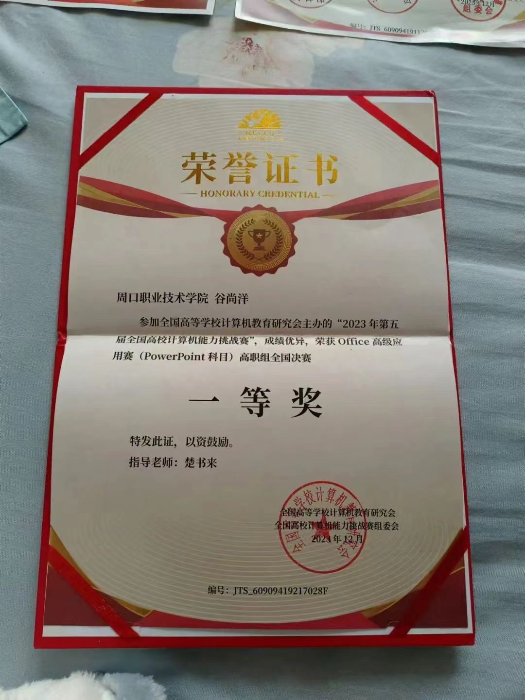 我是周口职业技术学院信息工程学院的专科生谷尚洋。在过去的几年中,我一直秉持着追求卓越、不断超越自我的信念,努力成为一名优秀的大学生。在学术、社团活动以及志愿服务等方面,我都取得了一些成绩。